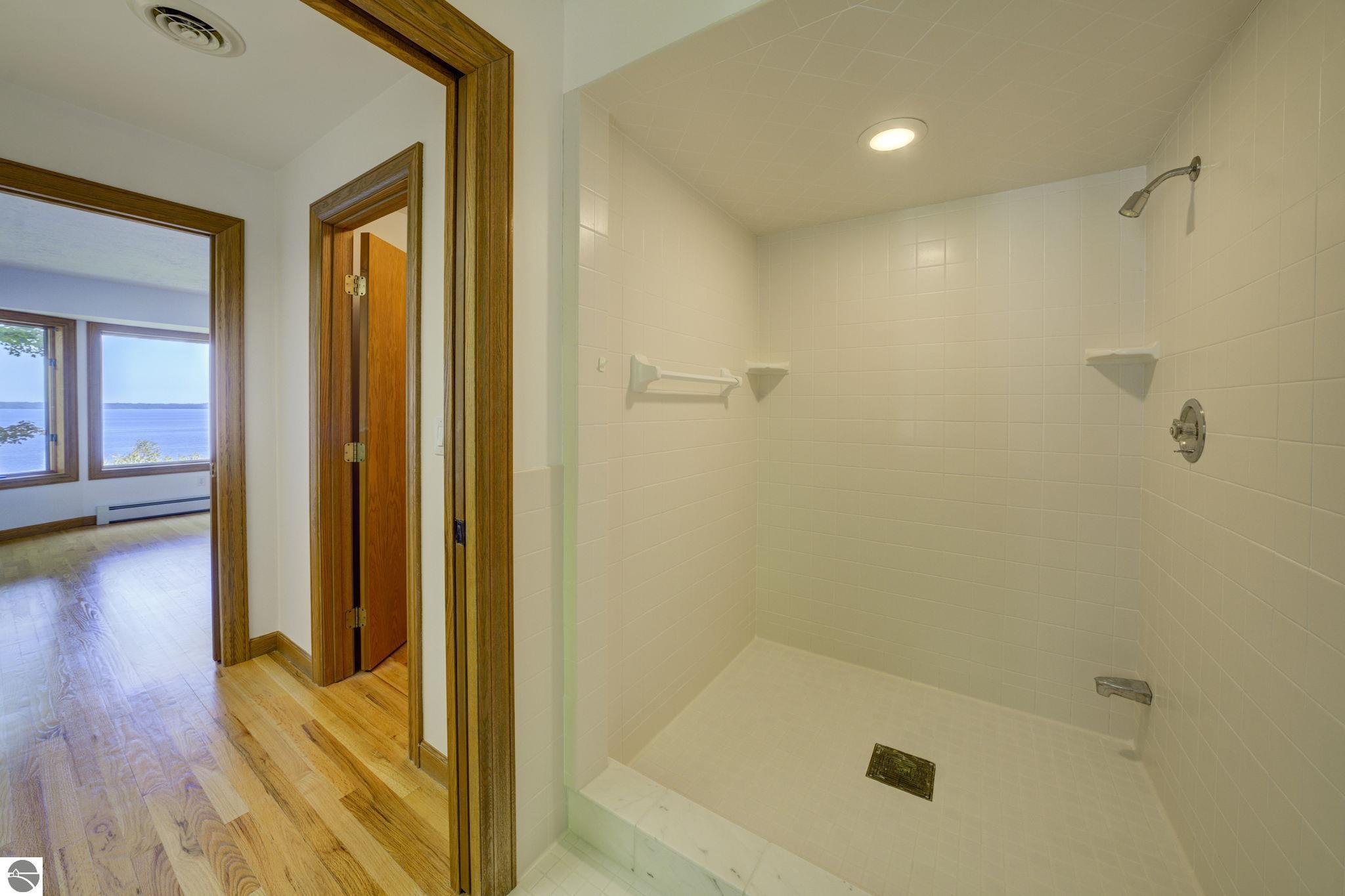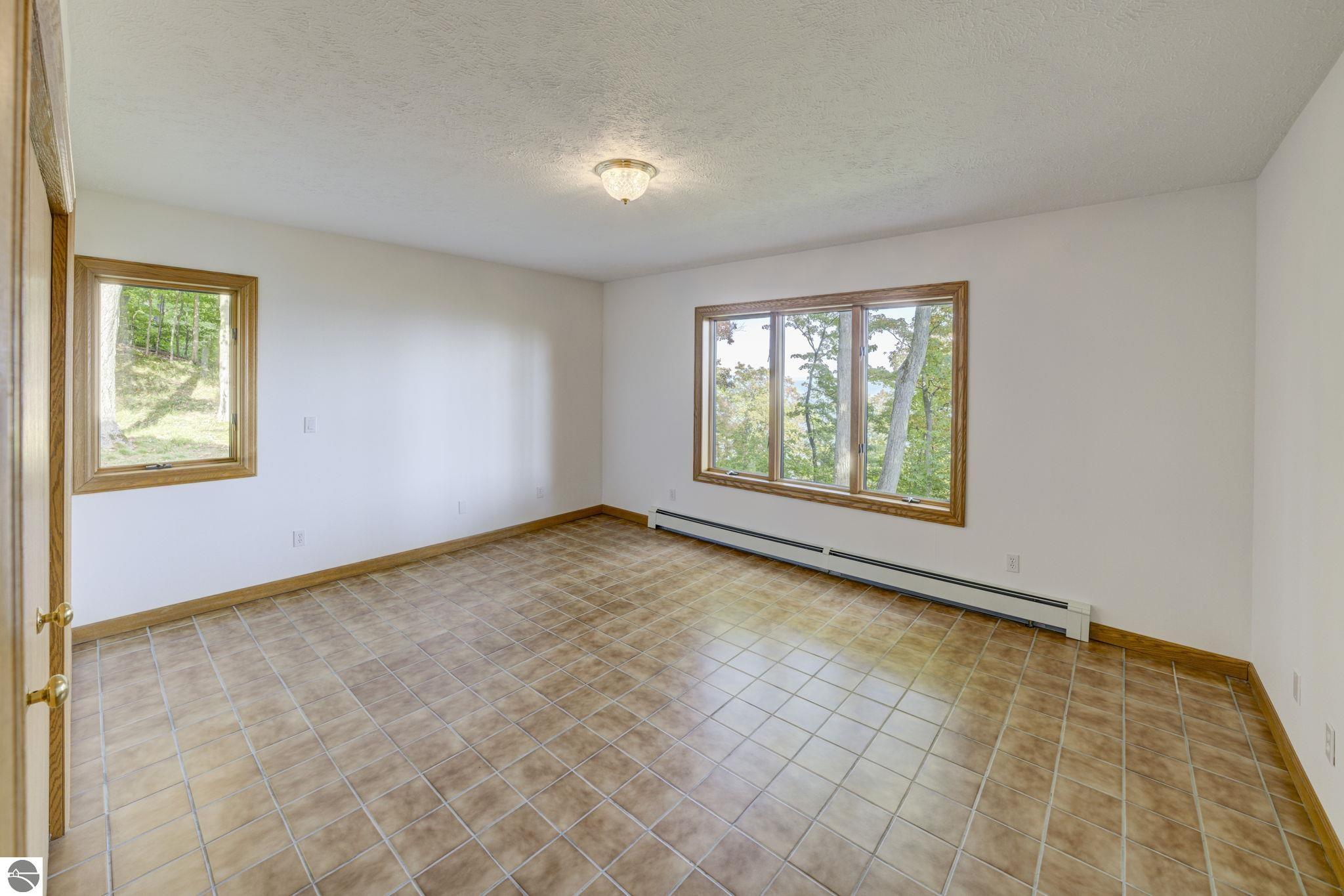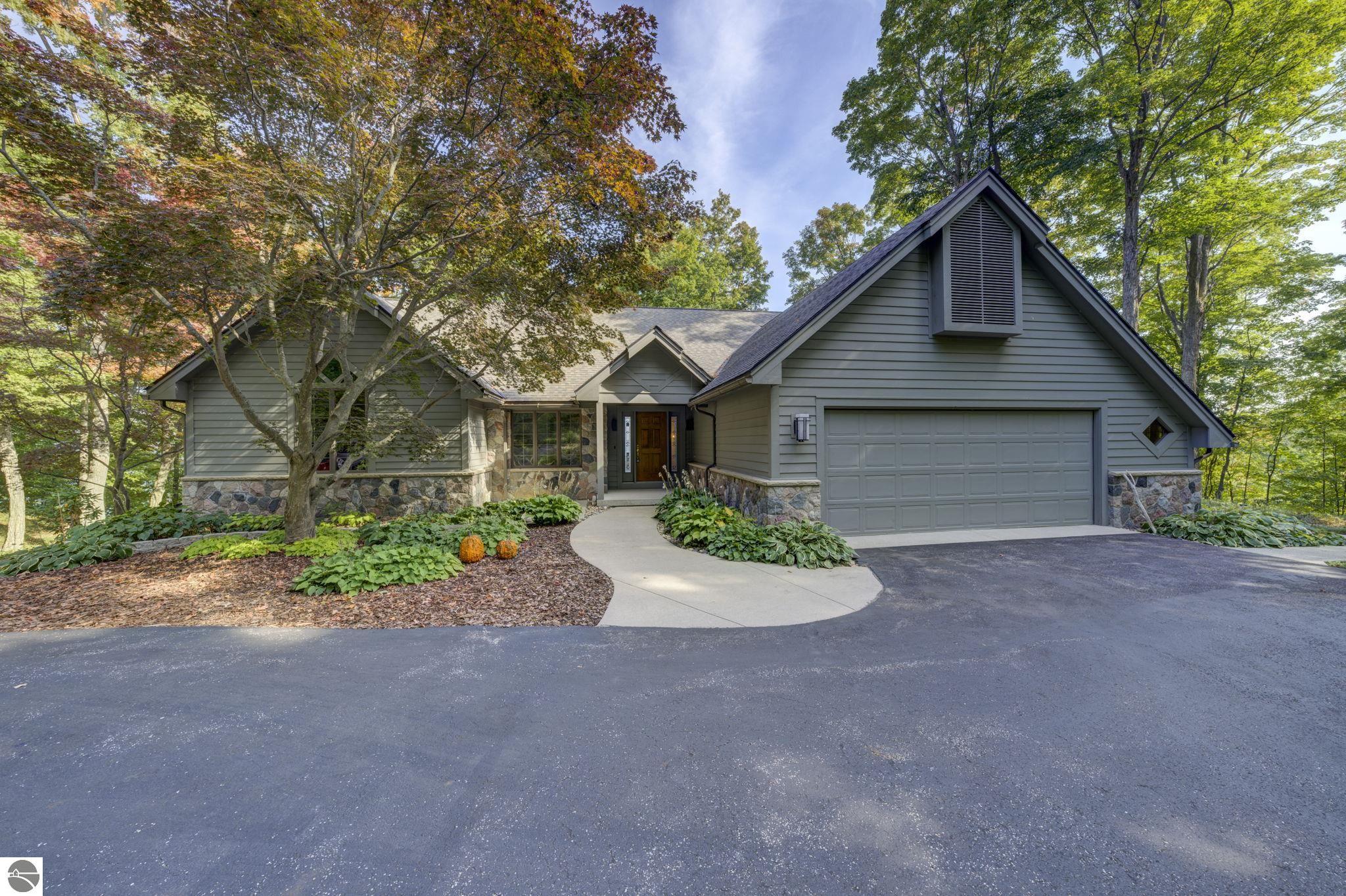 Enjoy breathtaking, 180-degree Bay views over Old Mission Peninsula and beyond from this beautifully designed 4-bedroom, 3.5-bath ranch home. With over 3,600 finished square feet, this home offers generous living spaces, soaring 17-foot cathedral ceilings, and expansive windows that flood the interior with natural light and frame the stunning Bay vistas. The open-concept layout includes spacious living room and family room, each with a cozy fireplace, perfect for entertaining or relaxing. The main level also features a dedicated den or home office, formal and informal dining areas, and two bedroom suites. The owner was in process of remodeling the kitchen and it is a blank slate, ready for buyer to add their own design & style. Bathrooms boast ceramic tile, vanities with granite countertops. Hardwood flooring flows throughout the main level, while the full walkout lower level includes in-floor radiant heat for year-round comfort. Additional highlights include 8-zone heating system, central air conditioning, a wooded, elevated lot offering privacy and natural beauty, built-in gazebo and waterside deck, shared West Bay water access just a short walk away. This exceptional home seamlessly combines comfort and unmatched Bay views, an ideal Northern Michigan retreat or year-round residence. Highest & best offers due Monday, October 6, 2025 at 5:00pm.