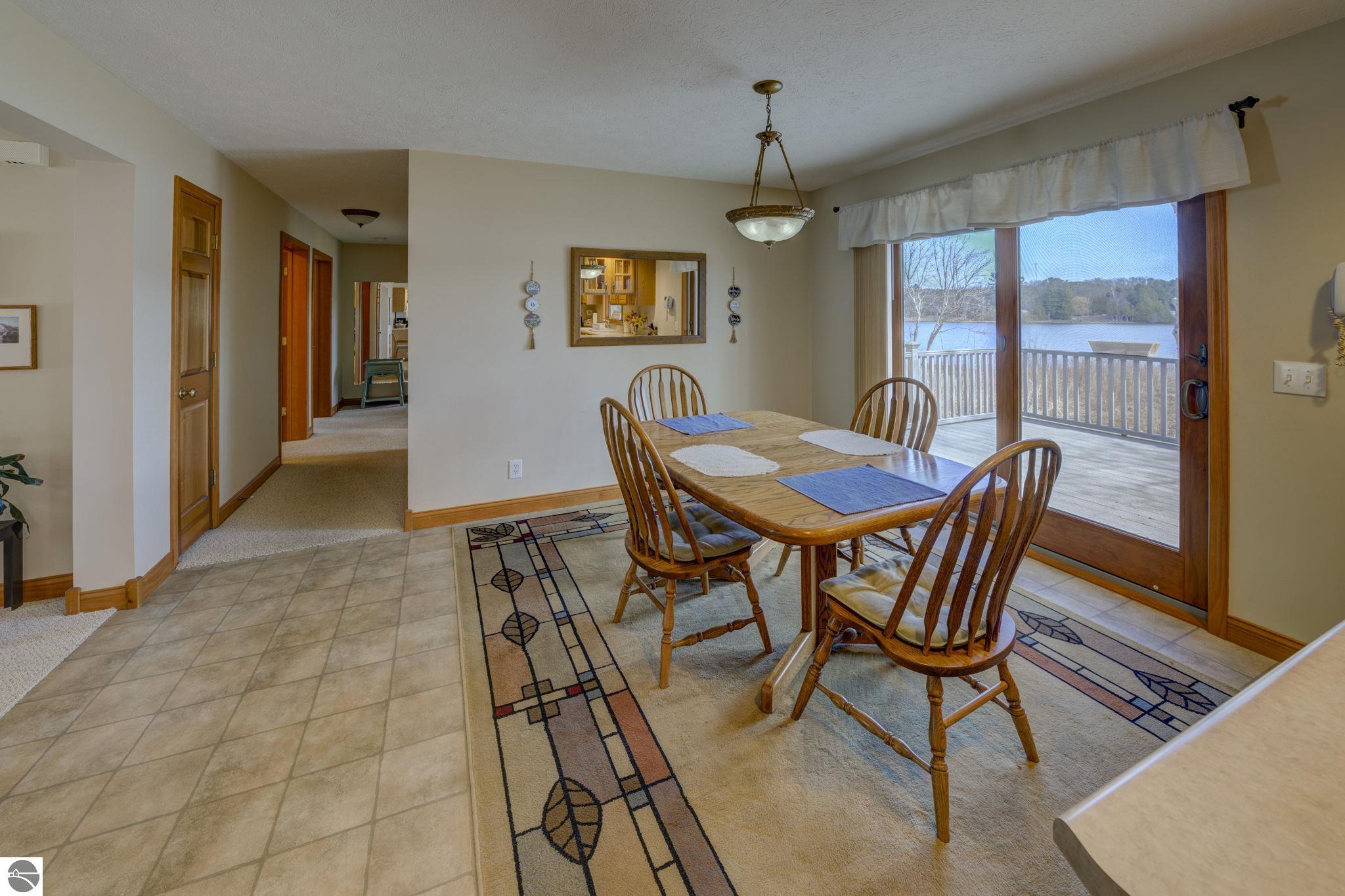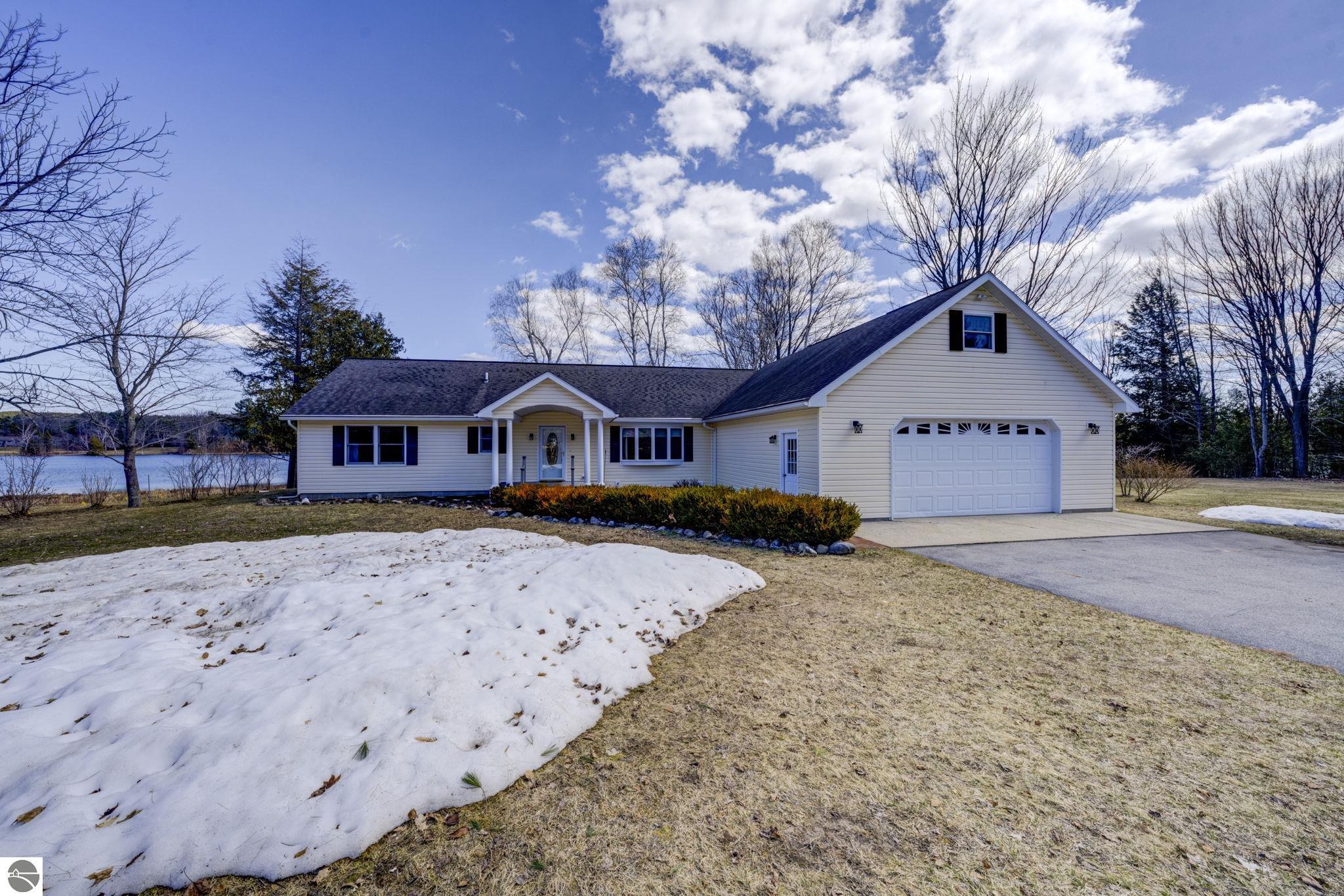 Enjoy the best of Leelanau County living with this inviting ranch home set on 127 feet of private frontage on South Lake Leelanau. Perfectly located just a mile from the charming village of Lake Leelanau, this property offers both peaceful waterfront living and easy access to local dining, shops, and amenities. Inside, the home features a comfortable and functional layout highlighted by a primary suite, ideal for relaxing after a day on the water. Large windows bring in natural light and showcase beautiful lake views, while the open living areas create a welcoming space for gathering with family and friends. Step outside onto the deck to take in the serene waterfront setting, perfect for morning coffee with sunrise views. Additional space is found in the bonus room above the garage, offering flexibility for a home office or recreational area. Whether you're looking for a year-round residence or a seasonal getaway, this property combines classic ranch-style comfort with the beauty and lifestyle of waterfront living.