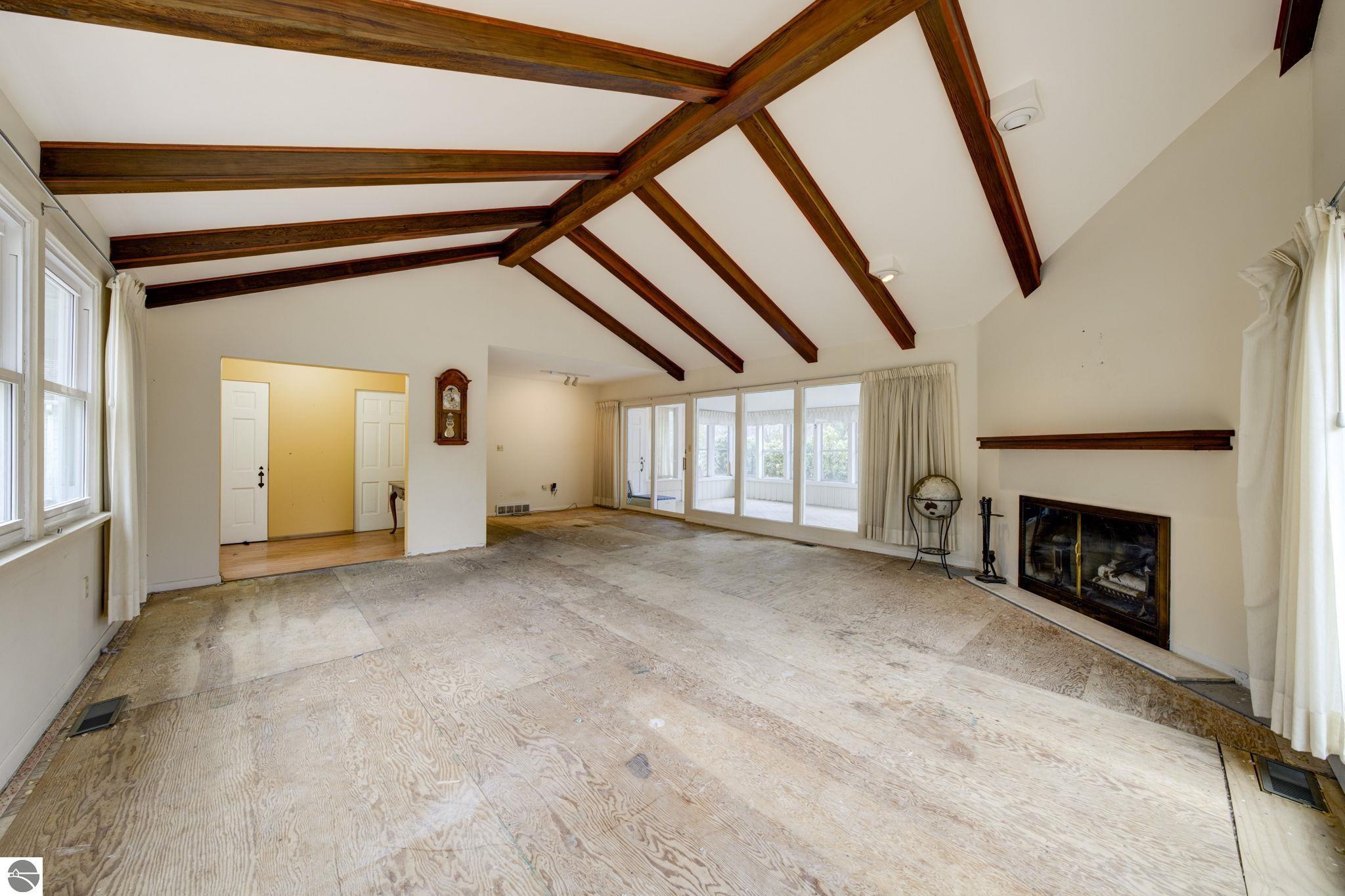 Located in the heart of the charming Village of Northport, this 3-bedroom, 1¾-bath home offers incredible potential. Featuring hardwood floors in all three bedrooms, the home provides a solid foundation ready for a buyer to remodel. The spacious living room with beamed ceilings is centered around a cozy wood-burning fireplace, perfect for adding warmth and character. Enjoy the added living space of the 3-season porch—an ideal spot to relax and take in the peaceful surroundings. A full basement offers ample storage or the opportunity for additional finished space. Additional highlights include a 2-car attached garage and an expansive workshop, perfect for hobbies, storage, or future projects. This property is a great opportunity for investors or buyers looking to customize and build equity in a desirable Leelanau County. With its prime setting in Northport and strong potential, this home is ready for your vision and personal touch.